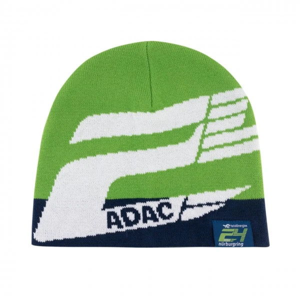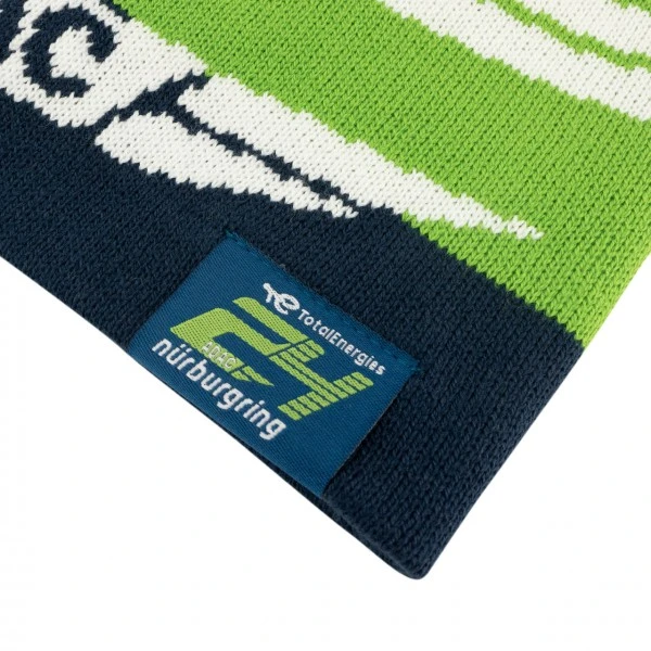 The blue-green knitted beanie is part of the official 24h-Race Nürburgring Fan-Collection 2022. Besides beanies, the collection includes other products like t-shirts, hoodies, jackets and more with 24h- and sponsor-branding.
