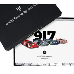 Stylish socks inspired by the Porsche 917. The 917 is often referred to as the best racing car of all time. The 917 owes its fame to its victories in the legendary 24-hour race at Le Mans and its oppressive dominance of endurance races in the 1970s, in particular, to its striking paintwork.