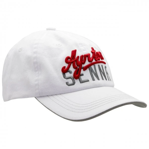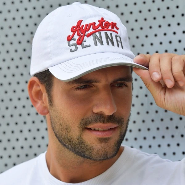 White cap from our Original 1960 Collection. On the front is Ayrton Senna’s name embroidered. The letters of the first name are realized with a 3D-embroidery technique. On the left is an application with the logo of the original 1960 collection.