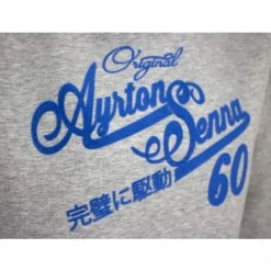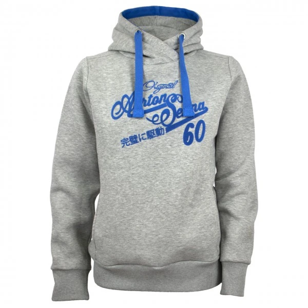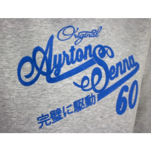 Sporty ladies hoodie dedicated to Ayrton Senna’s achievements in Japan. The flock-print on the chest shows Ayrton Senna’s name and the 60 for his year of birth.