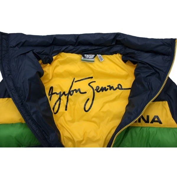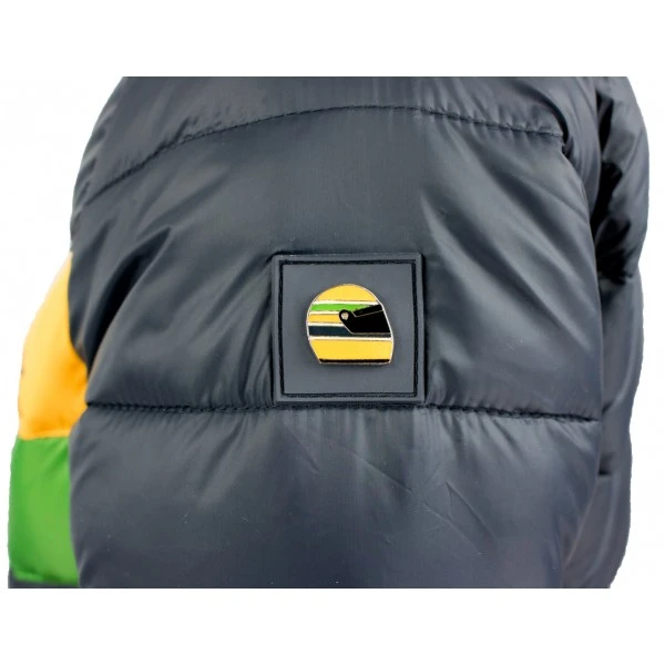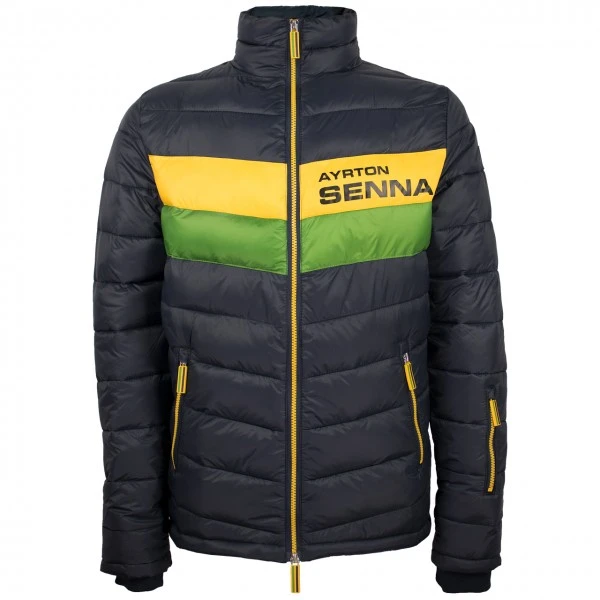 This jacket in the colors of Ayrton Senna´s helmet is a tribute to the great Formula 1 racing driver Ayrton Senna.