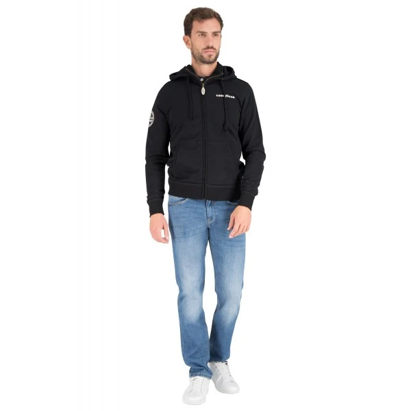 The black hooded sweat jacket “Richmond” is made of high-quality cotton with added polyester and has the Goodyear logo embroidered on the front and right sleeve. Further details are the high collar and the sewn-on side pockets. The close-fitting cuffs and hem ensure a comfortable fit.