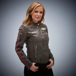 Sporty cut leather jacket for ladies from the Gulf racing team in racing look with various motorsport patches. Quilted shoulders and two racing stripes on the arm complete the perfect look of the masculine Daytona Jacket.