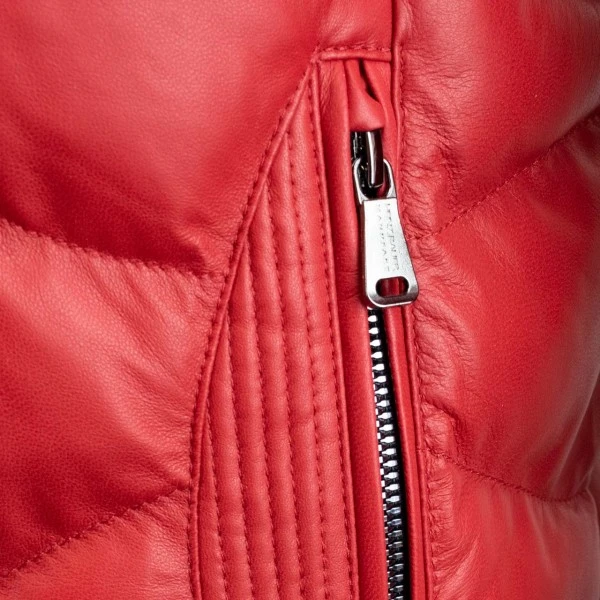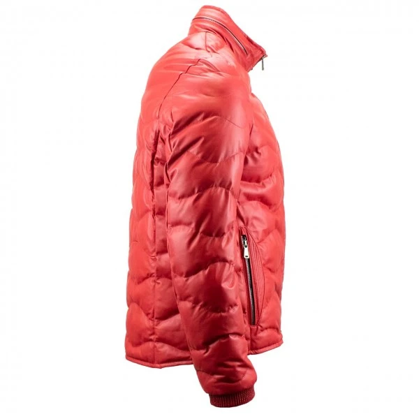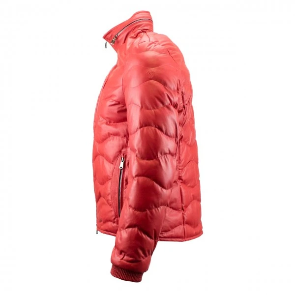 The Nürburg leather jacket by Heinz Bauer is made of the finest lamb nappa and is a classic from the manufacturer thanks to its sporty cut. The strong red and the black accents underline the racing look of this high-quality quilted jacket. Among racing and motorsport connoisseurs, the Nordschleife of the Nürburgring is the absolute pinnacle. Filled with real down, the convertible leather jacket keeps you warm even on colder days and impresses with its breathability, integrated wind deflector collar and lightness. The integrated wind deflector can be discreetly folded into the collar when not needed. As usual with Heinz Bauer jackets, the lining is treated with a silver ion anti-smell finish.