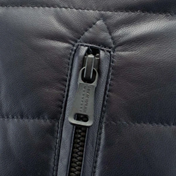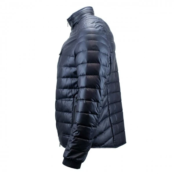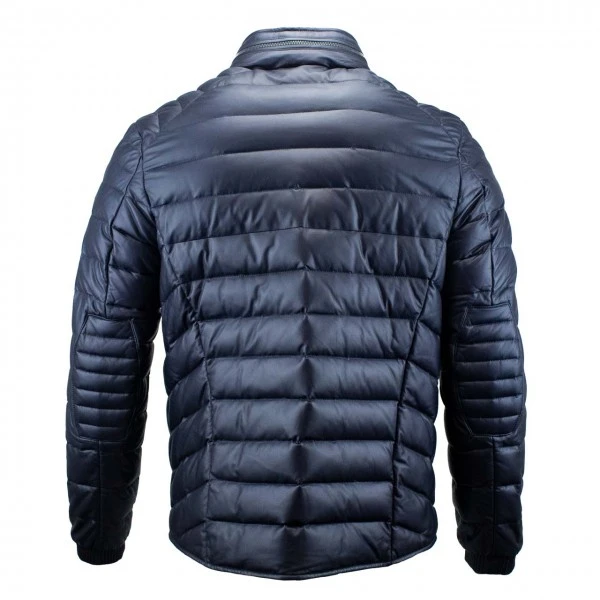 The Speedster by Heinz Bauer is made of the finest lambskin leather and is a classic from the manufacturer thanks to its sporty cut. The dark blue and black accents combined with an inner lining with Formula 1 print underlines the racing look of this high-quality quilted jacket. Filled with real down, the convertible leather jacket keeps you warm even on colder days and impresses with its breathability, integrated wind deflector collar and lightness. The integrated wind deflector can be discreetly folded into the collar when not needed. As usual with Heinz Bauer jackets, the lining is treated with a silver ion anti-smell finish.