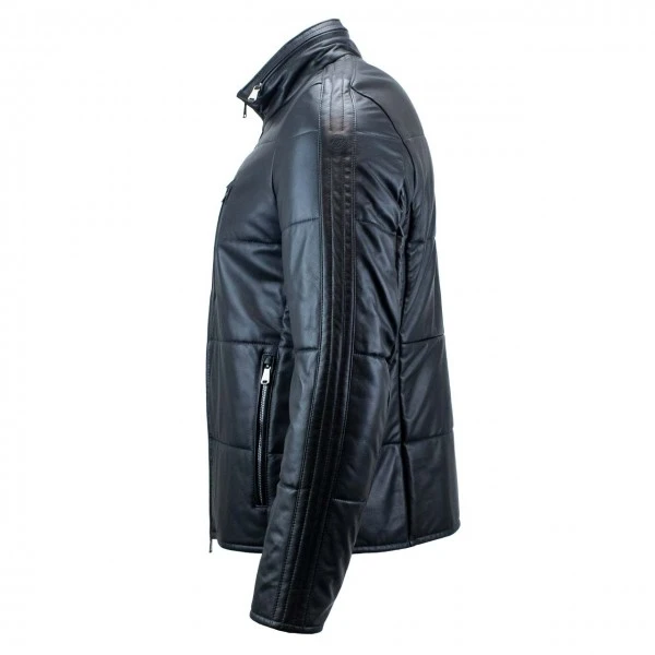 The Tempelhof leather jacket by Heinz Bauer is made of wafer-thin lambskin leather and the highest quality cashmere wool and is a classic from the manufacturer thanks to its stylish cut. The black and silver accents combined with a Loro Piana cashmere lining underline the quality of this high-quality quilted jacket. Loro Piana cashmere is known worldwide for its excellent quality and workmanship and is rightly the world market leader for fine merino and cashmere wool. The jacket has been produced in a new process, which involves the material bonding the lambskin with the cashmere wool in a “sandwich”. This innovative product is a sensation in wearing comfort. Never before has a leather jacket been so light, thin and cosily soft, yet very warm. The integrated wind deflector can be discreetly folded into the collar when not needed. As usual with Heinz Bauer jackets, the lining is treated with a silver ion anti-smell finish.