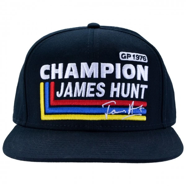 The James Hunt cap Silverstone in black with large embroidery is the matching accessory in the Silverstone series. The cap is dedicated to his world champion title from 1976 and picks up the James Hunt helmet design. With the big World Champion lettering and the James Hunt signature, the cap is a real eye-catcher.