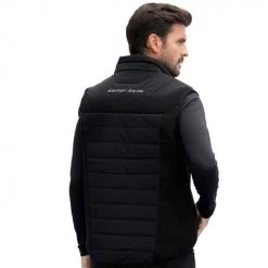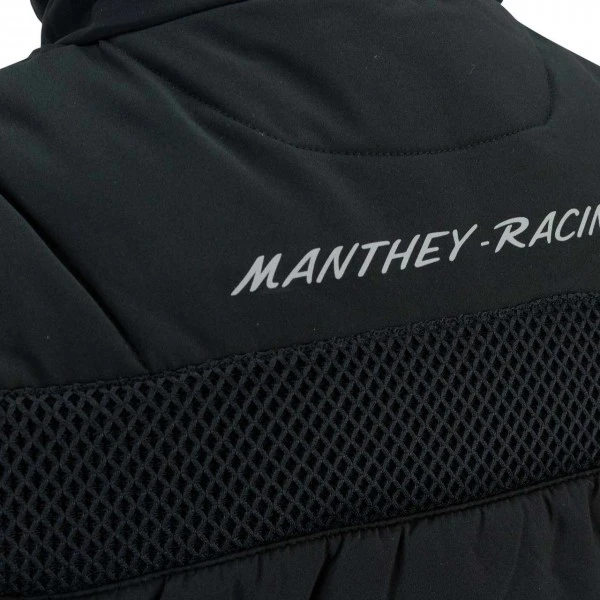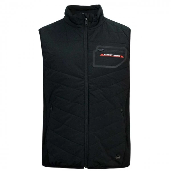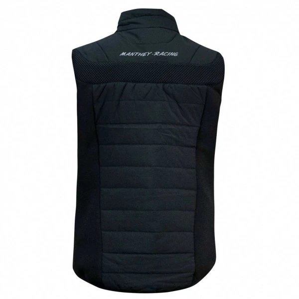 The Heritage waistcoat in black from the Manthey-Racing Heritage collection. The waistcoat is made of easy-care polyester with added cotton and elastane and has the Manthey-Racing logo printed on the front and back. Mesh inserts are also incorporated on the back. The Manthey-Racing abbreviation is engraved on the zip puller in carbon look.