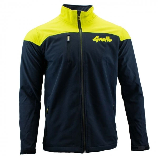 The yellow and black softshell jacket for men from the Manthey Grello collection. In addition to jackets, the collection also includes other products such as caps, shirts, jumpers and accessories.