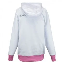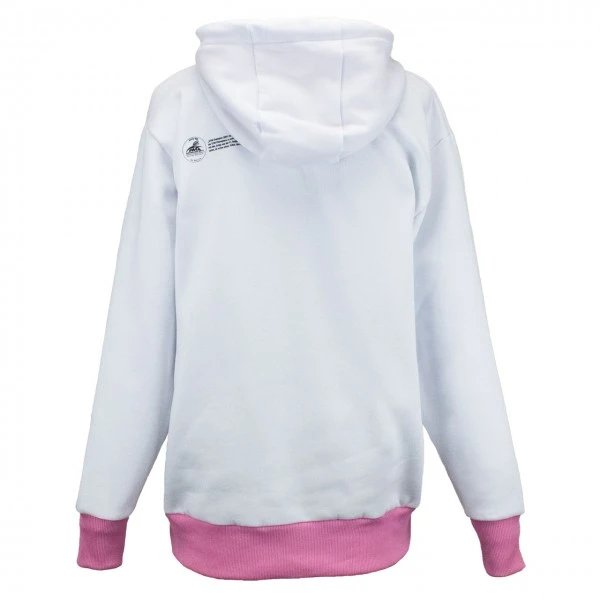 The Champion ladies hoodie in white with pink applications from the Maximilian Götz collection. The hoodie made of high-quality cotton with polyester content is printed with the Maximilian Götz logo on the front. The back features his Champion quote. The design is rounded off by the close-fitting cuffs and hem as well as the integrated kangaroo pocket.