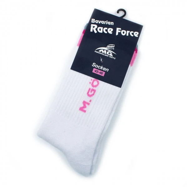 The white socks are part of the Maximilian Götz collection, which was launched in honour of his DTM championship title in 2021. In addition to accessories, the collection also includes other products such as T-shirts, jumpers and caps.