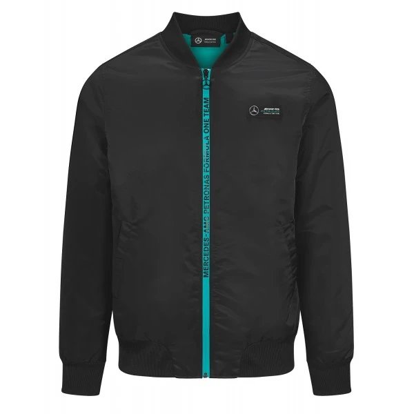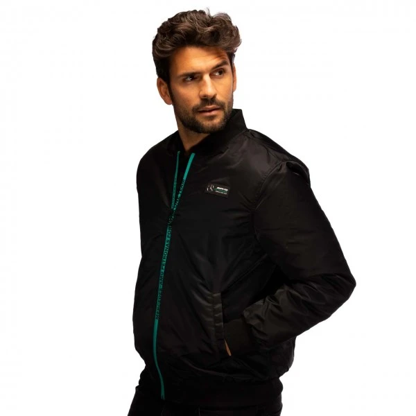 The bomber jacket is part of the official Mercedes-AMG Petronas F1™ fan collection, which includes jackets as well as other products such as T-shirts, polo shirts, sweatshirts and more.