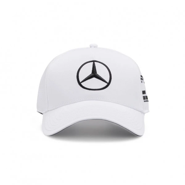 The embroidery on the front shows the Mercedes emblem, while the back features the team and driver logo. The clip fastening on the back allows the size of the cap to be individually adjusted.