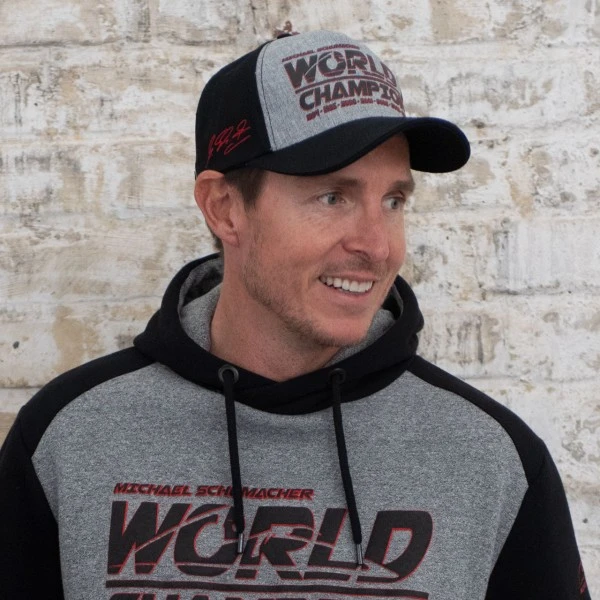 Michael Schumacher Cap Racing in black-grey. The adjustable cap from the 2018 collection with large World Champion logo. Michael Schumacher signature embroidered on the sides. Official Michael Schumacher logo on the back.