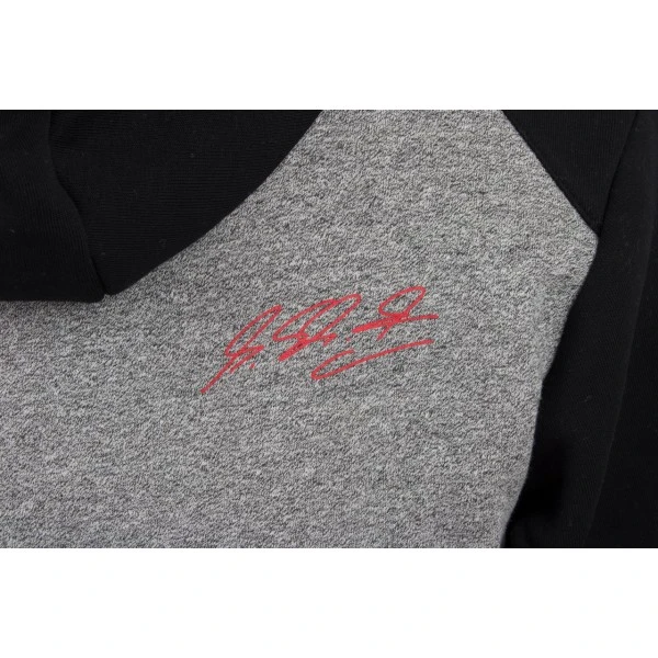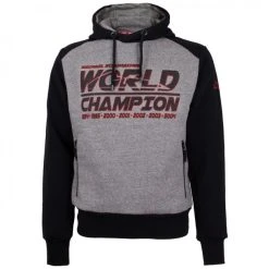 Hooded sweater from the 2018 Michael Schumacher fan collection. The sweater shows the World Champion logo with the years of his World Champion title on the chest, as well as the signature of Michael Schumacher on the shoulder. On the sleeve is the MS logo.