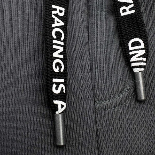 The Series 2 sweatpants for women in anthracite are made of high-quality cotton with added polyester. In addition to two pockets on the front, there is another pocket on the back, which is printed in white with the Driver logo, which is a combination of Mick’s profile and his Formula 1 start number. In addition, there is the quote “Racing is a state of mind” on the drawstring of the waistband. The design is rounded off by internal zips on the trouser legs.
