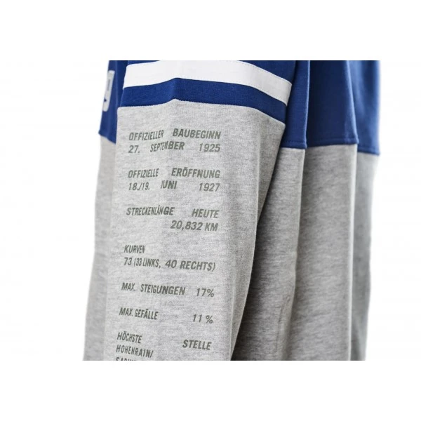 The “Challenge” hoodie in blue and grey-melange from the Nürburgring fan collection features the Nürburgring lettering on the front. Further details of the hoodie made of high-quality cotton with viscose additive are the Nürburgring logo on the hood and the incorporated side pockets with zip. The close-fitting cuffs and waistband ensure a comfortable fit.