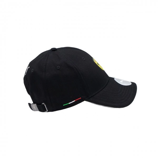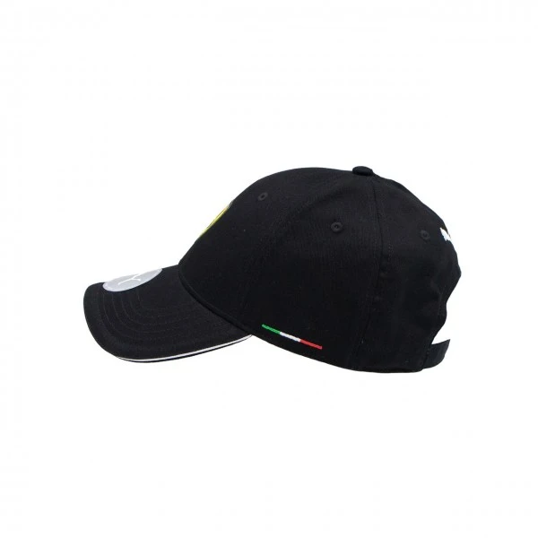 This black children’s Classic Cap is made of high-quality cotton and features the Scuderia Ferrari logo on the front. The Italian flag is depicted on both sides. The cap can be adjusted to any size with the fastener on the back.