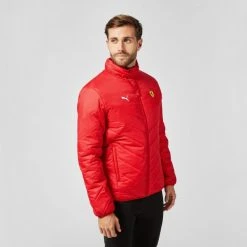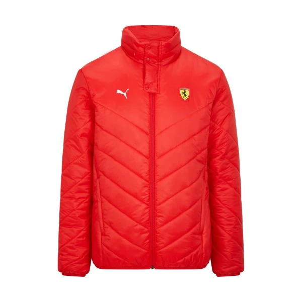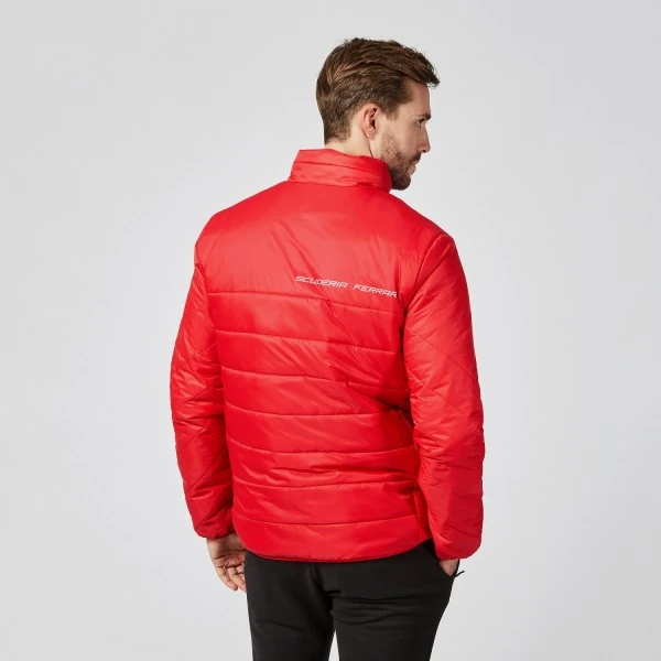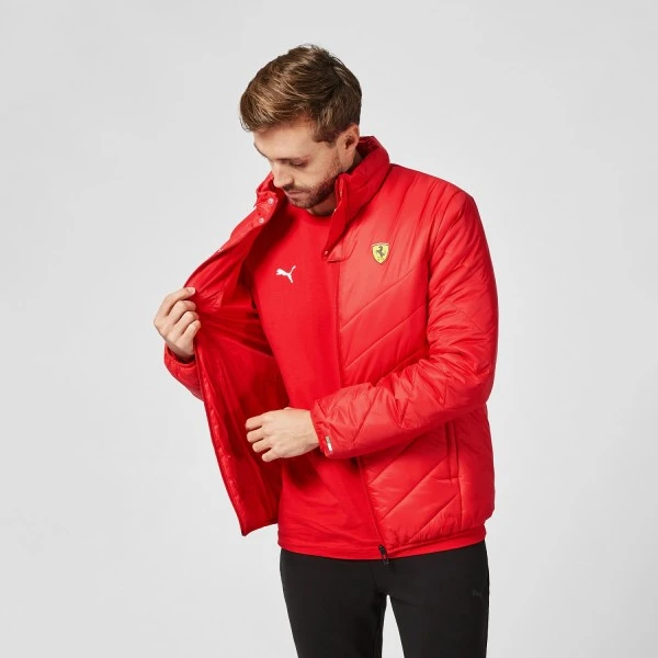 At the height of the chest is the official Ferrari emblem with the prancing horse and the Puma logo. The back of the jacket shows the official Scuderia Ferrari lettering.
