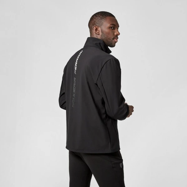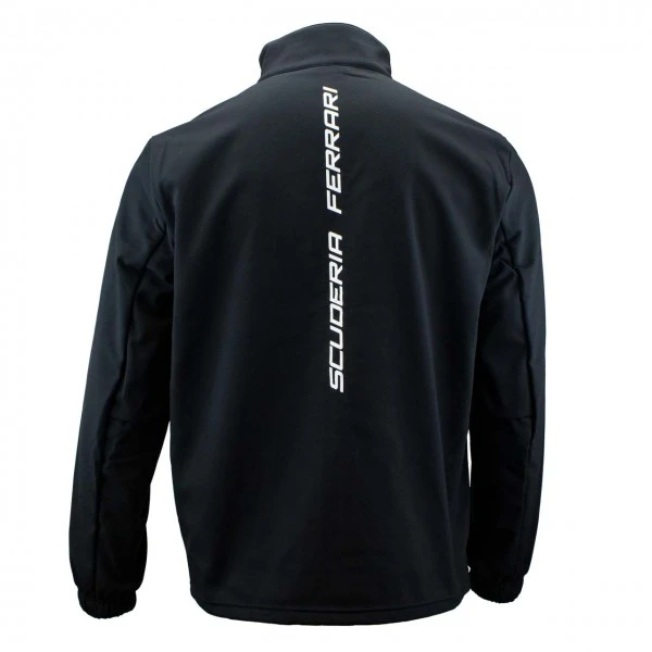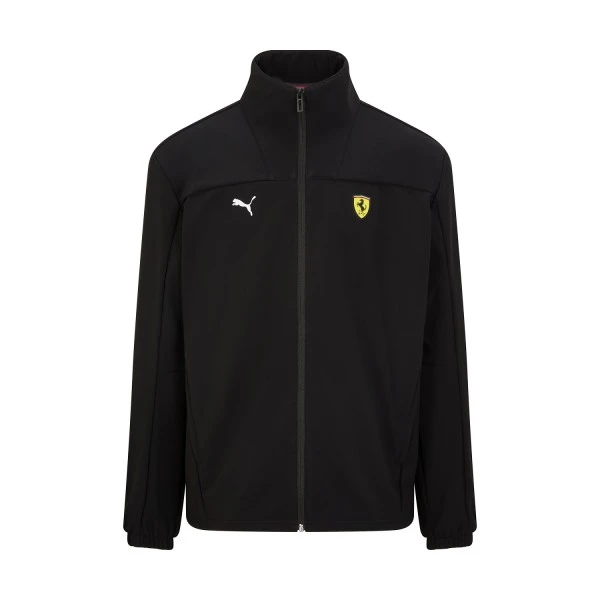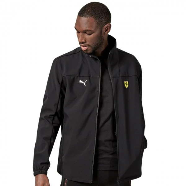 The high-quality jacket has a concealed zip and two pockets on the front. The Ferrari and Puma logos are on the chest. The Scuderia Ferrari lettering is on the back. The polyester material is particularly robust and water-repellent.
