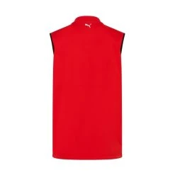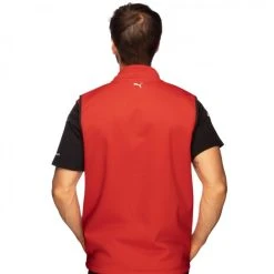 The red and black team waistcoat is made of easy-care polyester and features the Ferrari and Puma logos on the chest. The logos of the main sponsors and other partners are on black contrasting areas on the front.